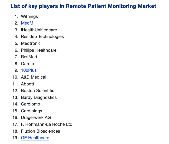 MedM is included in the top 10 list of key players in remote patient monitoring market, more info on report: https://straitsresearch.com/report/remote-patient-monitoring-market